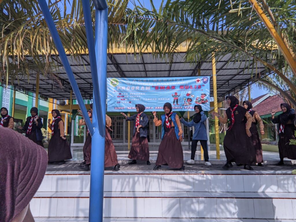 Banyuwangi – MTsN 1 Banyuwangi kembali menggelar program unggulan yang mendukung pembentukan generasi sehat dan cerdas melalui kegiatan Aksi Bergizi “EMAK NULIS” pada Jum’at (3/10/2025). Bertempat di halaman utama madrasah, kegiatan ini diikuti oleh seluruh siswa siswi dan guru dengan penuh antusias.