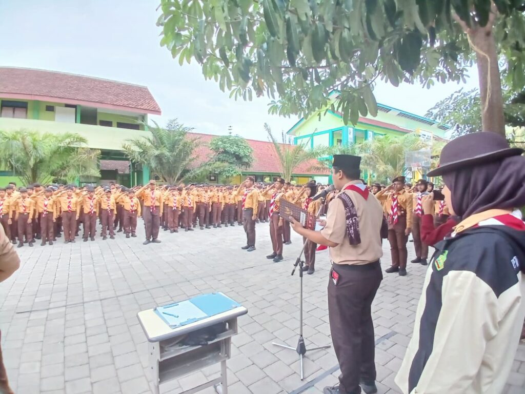 Banyuwangi – Jumat, 21 November 2025, MTsN 1 Banyuwangi kembali menegaskan komitmennya dalam pembentukan karakter unggul siswa melalui kegiatan rutin pembiasaan disiplin dan kepemimpinan yang digelar setiap Jumat sore. Agenda pekanan ini semakin istimewa dengan dilaksanakannya Upacara Pelantikan Pengurus Dewan Galang Pramuka Pangkalan MTsN 1 Banyuwangi periode 2025/2026 yang berlangsung khidmat.