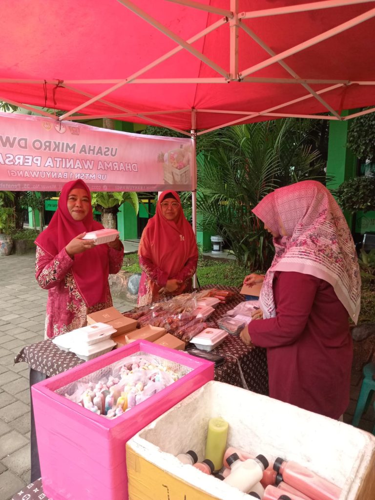 Melihat peluang besar tersebut, Seksi Bidang Ekonomi DWP UP MTsN 1 Banyuwangi memanfaatkannya dengan membuka bazar yang menjual beragam produk unggulan hasil olahan para anggota. Produk yang ditawarkan antara lain tahu susu, risol mayo, pempek, aneka keripik, nasi ayam geprek, nasi ayam bakar, es teh, es mambo, serta berbagai kudapan menarik lainnya.