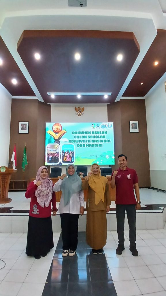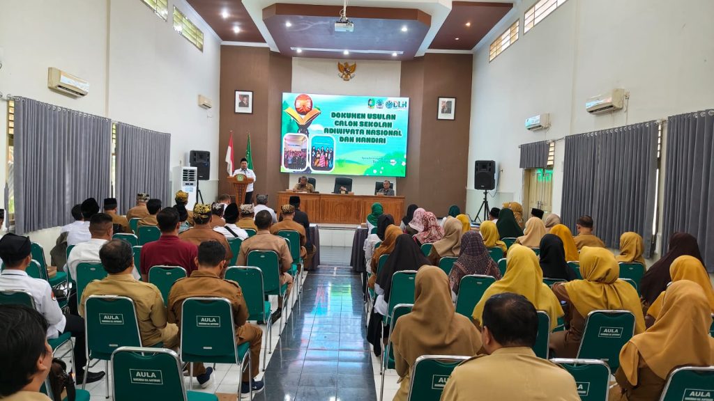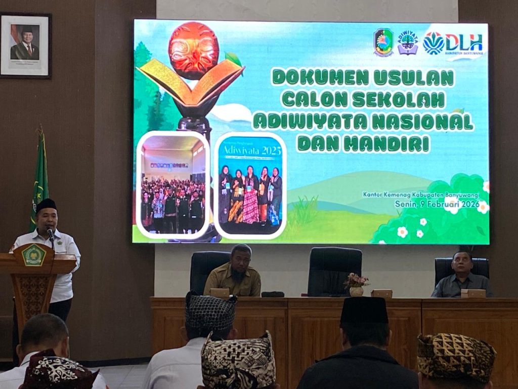 Banyuwangi — Tim Adiwiyata MTsN 1 Banyuwangi menghadiri kegiatan Sosialisasi Dokumen Usulan Calon Sekolah Adiwiyata Nasional dan Mandiri yang diselenggarakan pada hari Senin, 9 Februari 2026. Kegiatan ini berlangsung di Aula Kantor Kementerian Agama Kabupaten Banyuwangi.