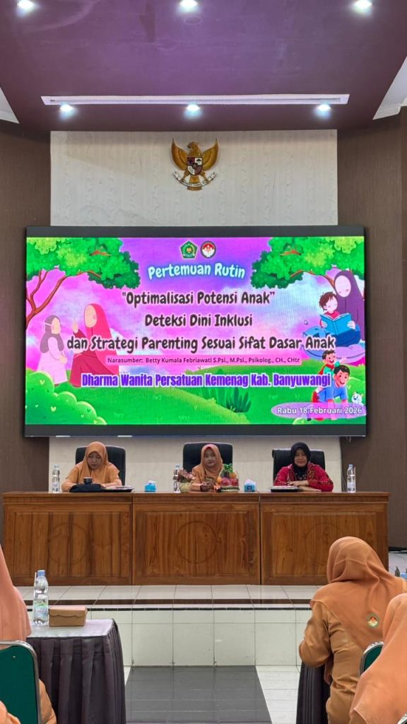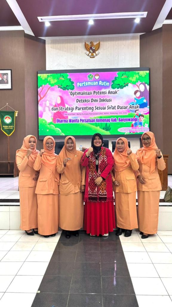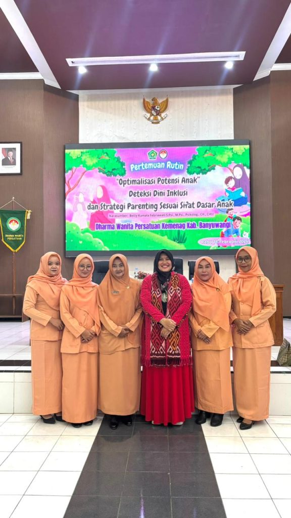 Dharma Wanita Persatuan (DWP) Kementerian Agama Kabupaten Banyuwangi kembali menggelar kegiatan rutin bulanan yang berlangsung khidmat dan penuh kehangatan pada Kamis, 15 Januari 2026, bertempat di Aula Kantor Kementerian Agama Kabupaten Banyuwangi. Kegiatan yang dimulai pukul 08.00 WIB ini mengusung tema “Bincang Santai Bersama Ibu Ketua DWP Kanwil Kemenag Jawa Timur” dan diikuti oleh anggota DWP dari berbagai satuan kerja di lingkungan Kemenag Banyuwangi.