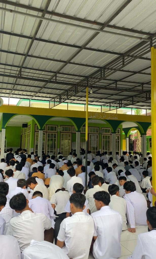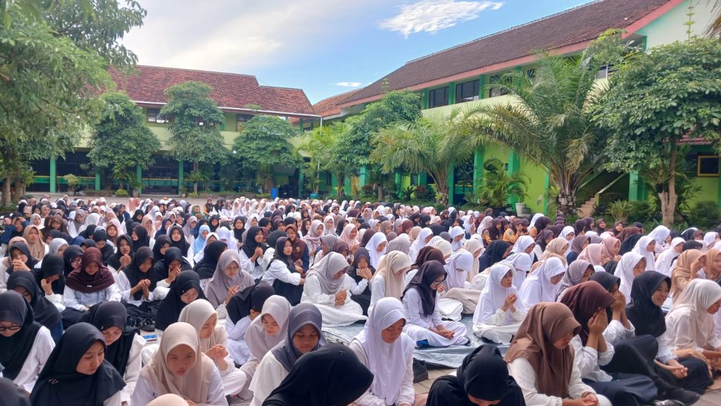 Suasana religius sangat terasa ketika para siswa dengan tertib dan penuh kekhusyukan mengikuti bacaan istighosah yang dipimpin oleh guru. Kegiatan ini juga menjadi sarana pembinaan karakter religius bagi para siswa agar semakin mendekatkan diri kepada Allah SWT serta menumbuhkan sikap disiplin, kebersamaan, dan rasa syukur.